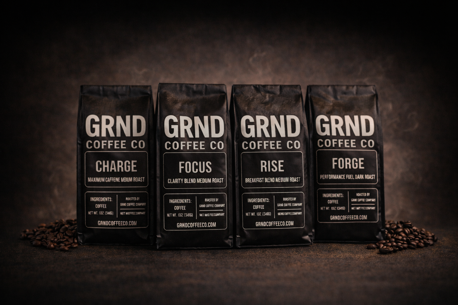 At GRND Coffee Co., we craft premium, small-batch roasted coffee designed for athletes, early risers, and grinders who refuse to settle for average. From bold high-caffeine blends to smooth breakfast roasts and Swiss Water decaf, our lineup delivers performance, flavor, and consistency in every bag.